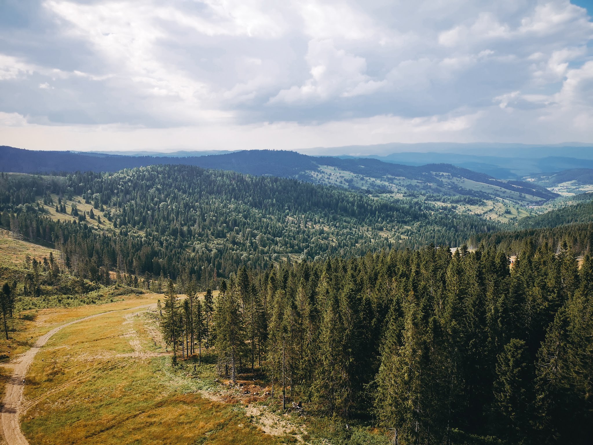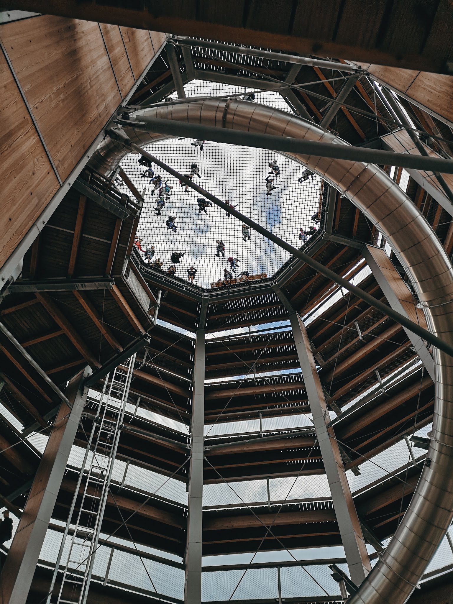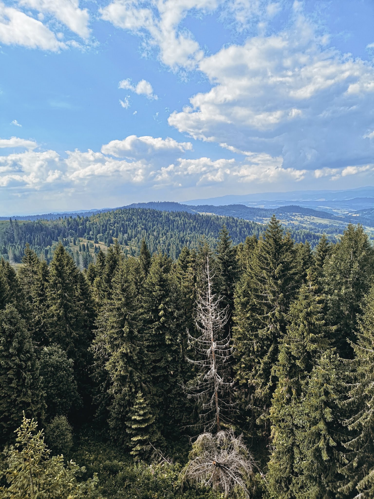 Weszliśmy, pooglądaliśmy i dalej nie wiem co mam myśleć. Z jednej strony spacer chodnikiem w koronach drzew jest dobrym pomysłem na spędzenie popołudnia, a z drugiej, kiedy dochodzi się do drewnianego molochu, to zaczynamy się zastanawiać, czy on czasem trochę nie szpeci krajobrazu. Dla mnie góry są piękne same w sobie i stawianie na nich dziwnych budowli, po których w górę i w dół biegają ludzie, chyba nie jest tym, czego oczekuję od życia. Nie dla mnie wymyślne atrakcje, a na widok dmuchańców uciekam w popłochu, ale przecież nie każdy tak ma. Mimo wszystko fajnie było spojrzeć na drzewa z innej perspektywy niż zwykle.